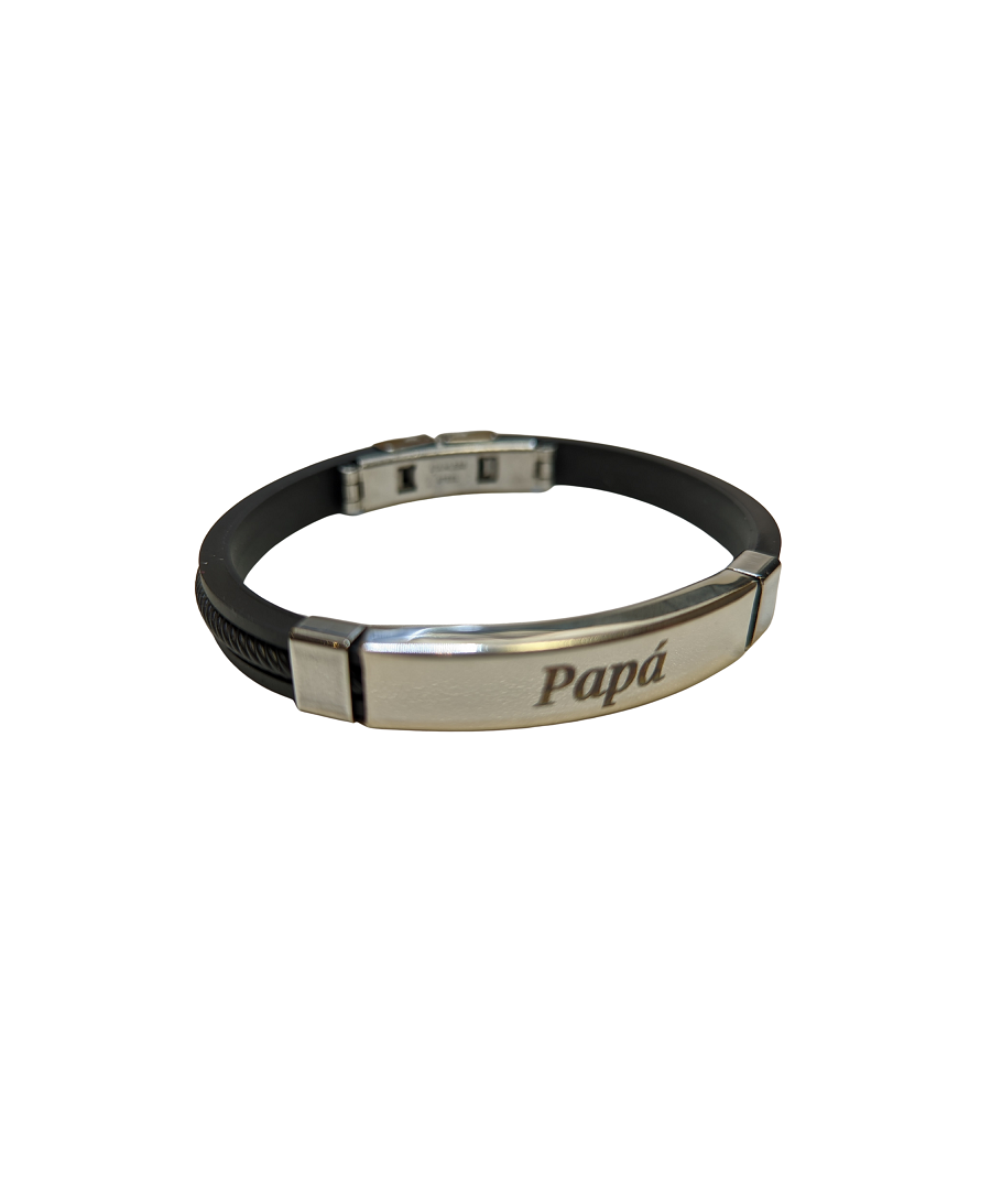 Pulsera de caucho, personalizada con nombre en chapa inox.
