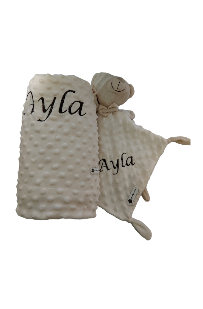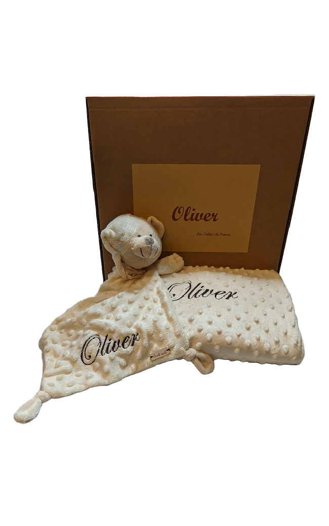 Seleccione el «Color» de la manta y del doudou, y a posteriori indique en «Observaciones» el nombre que se debe bordar y el color del hilo en que desea el bordado.